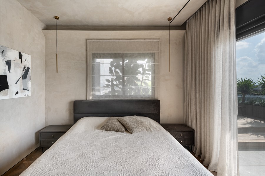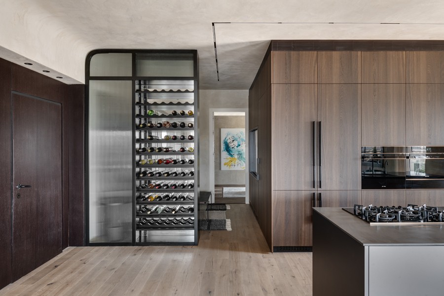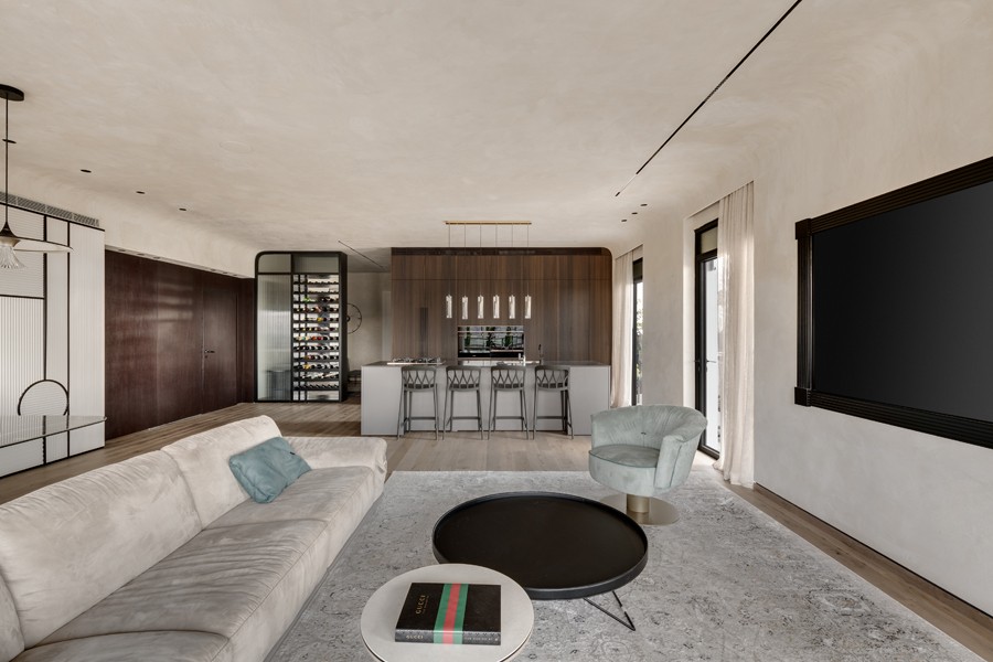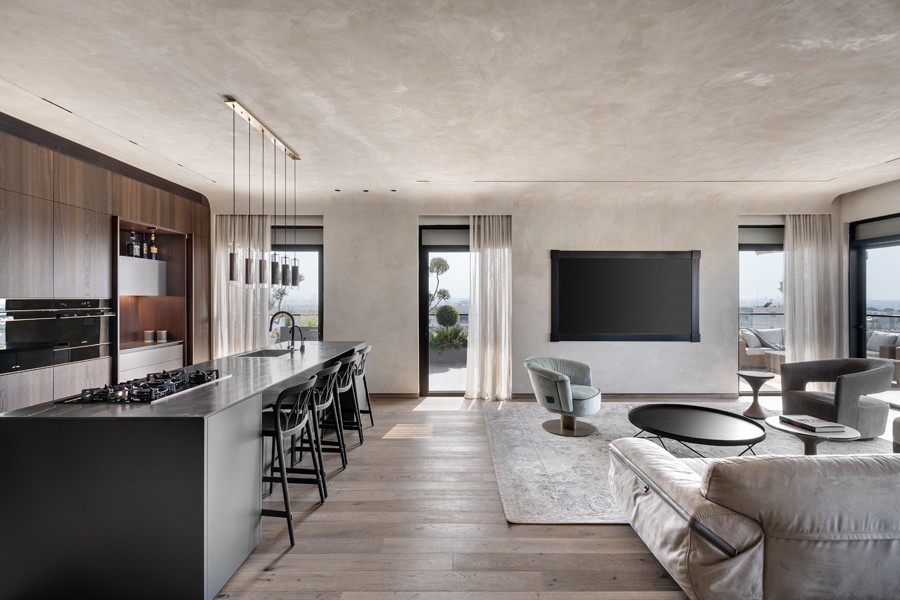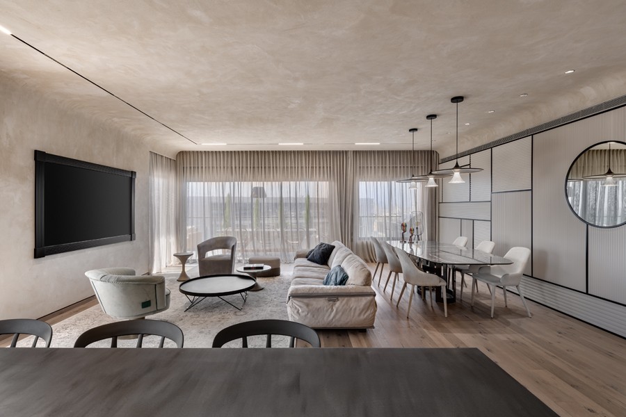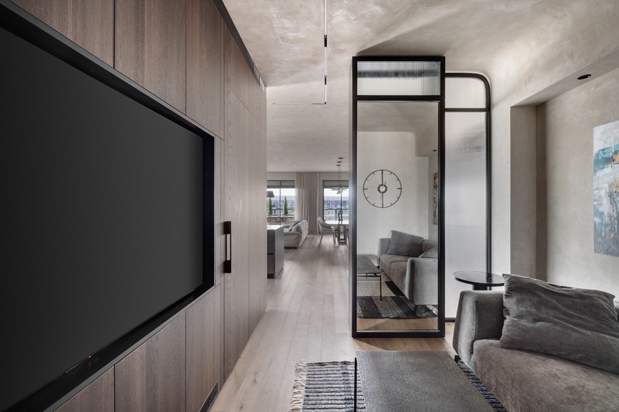 דירה שעוצבה סביב שפה חומרית חמימה ומדויקת, כזו שמשלבת עץ טבעי, טיח מינרלי ותכנון עדין שמלטף את החלל.