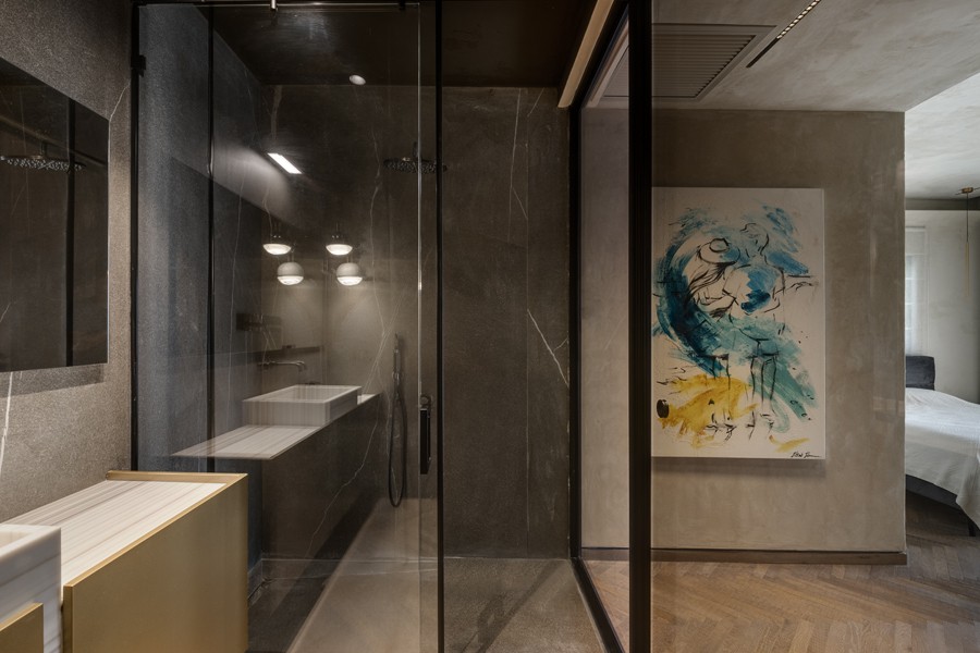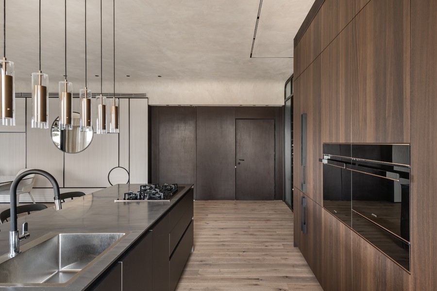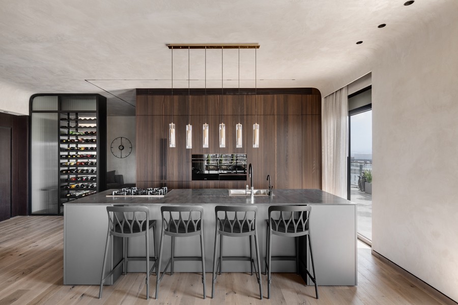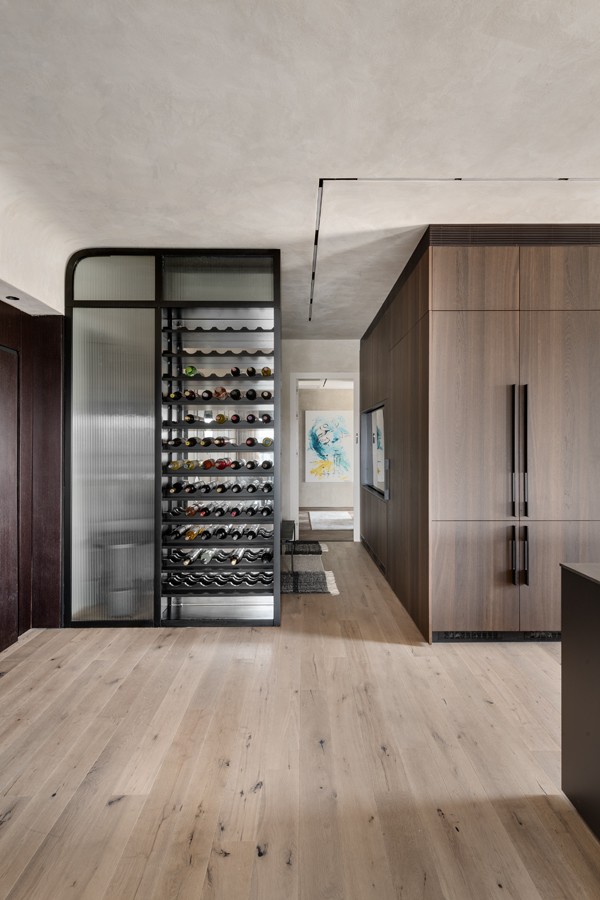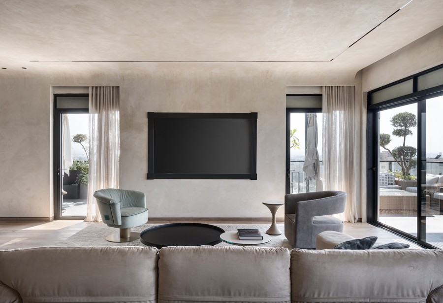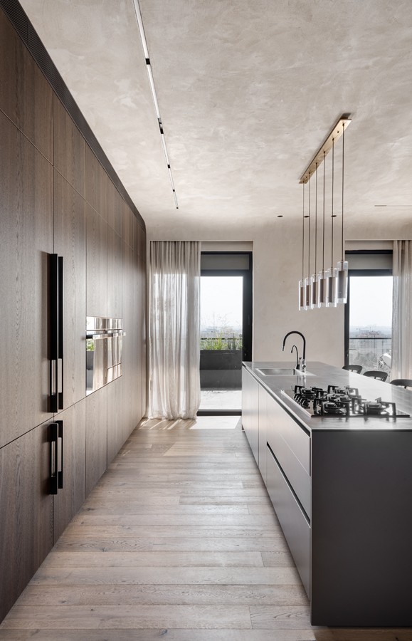 דירה שעוצבה סביב שפה חומרית חמימה ומדויקת, כזו שמשלבת עץ טבעי, טיח מינרלי ותכנון עדין שמלטף את החלל.