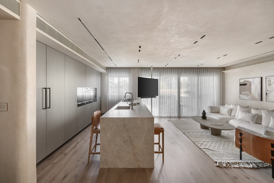 משפחה צעירה ומתרחבת של זוג מלא סטייל , דירה שנתפרה סביב חומרים ומוצרים מקוריים שתוכננו במיוחד לפרויקט, שילוב של טיח יחודי לצד רצפת פרקט ואין סוף של פרטים שמאפיינים את עיצוב הפנים.
