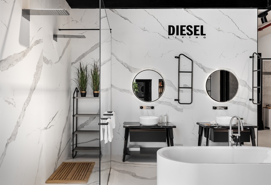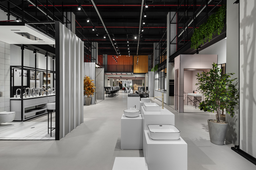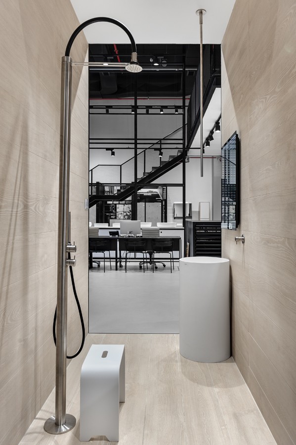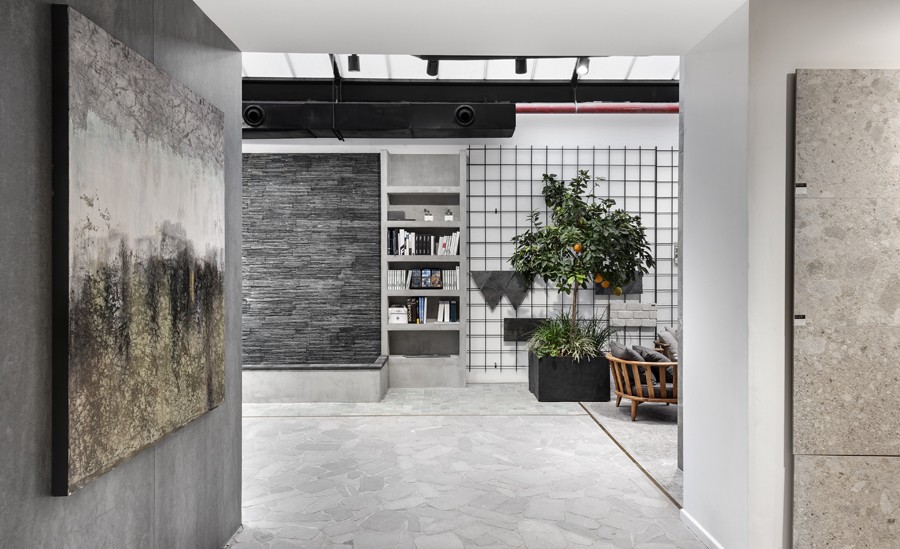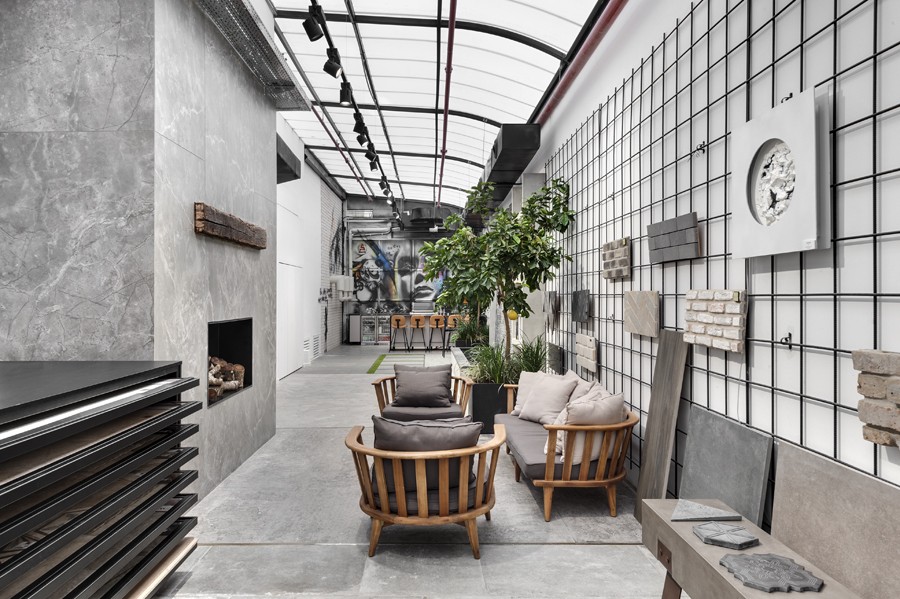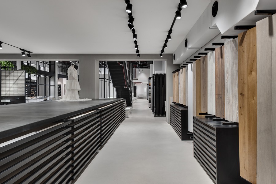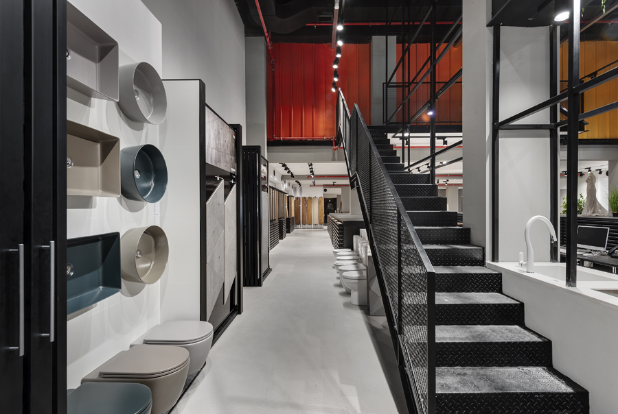 העיצוב נשען על גישה תעשייתית מוקפדת, שנועדה להדגיש את המוצר מבלי להתחרות בו. רצפת בטון חלקה יוצרת בסיס שקט וניטרלי, מעליו נבנה רב־שכבתיות של תצוגות בטקסטורות וחומרים מגוונים. השפה הגרפית והמרחבית גובשה כקונספט ייחודי למותג, והובילה לחוויית מבקר מובהקת ולבידול משמעותי בסביבת התצוגה.