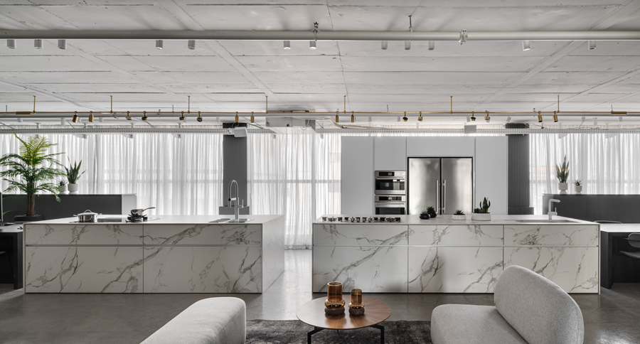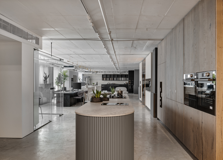 אולם התצוגה הראשון של חברת נאנו, המתמחה במטבחים מתקדמים, תוכנן תוך מענה לאתגר תכנוני משמעותי של חלל נמוך במיוחד. התכנון הפך את המגבלה להזדמנות, ויצר תחושת גובה ופתיחות באמצעות פרופורציות מדויקות, חומריות מאופקת וניקיון צורני. המטבחים הוצגו בקונפיגורציה שתוכננה בקפידה יחד עם צוות החברה, ושולבו עם משטחים, חיפויים ומוצרי חשמל של מיטב המותגים. השפה האדריכלית נשענה על ערכי יוקרה, בהירות ואיזון, והשתלבה באופן מלא עם הקונספט המיתוגי שגובש לפרויקט.